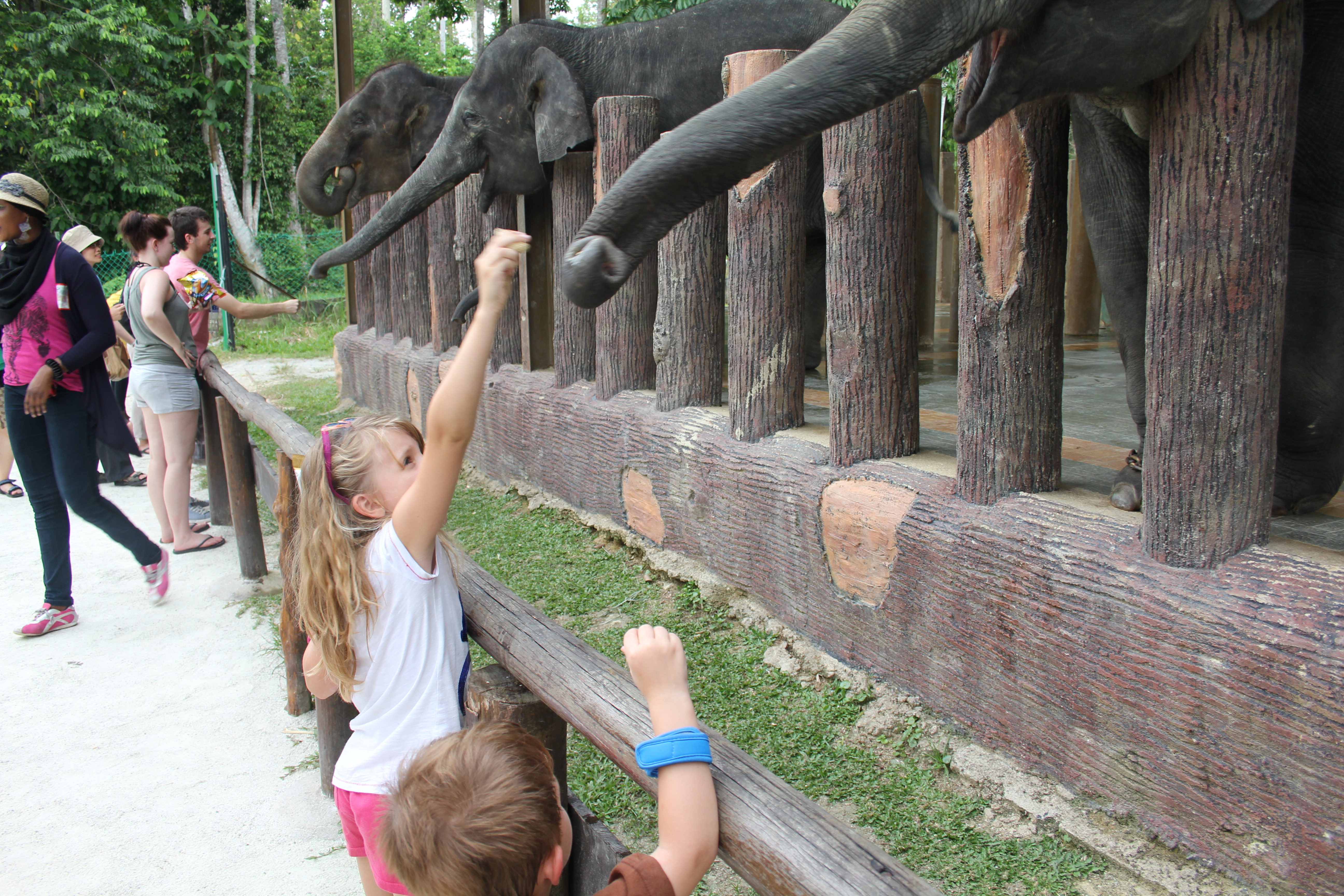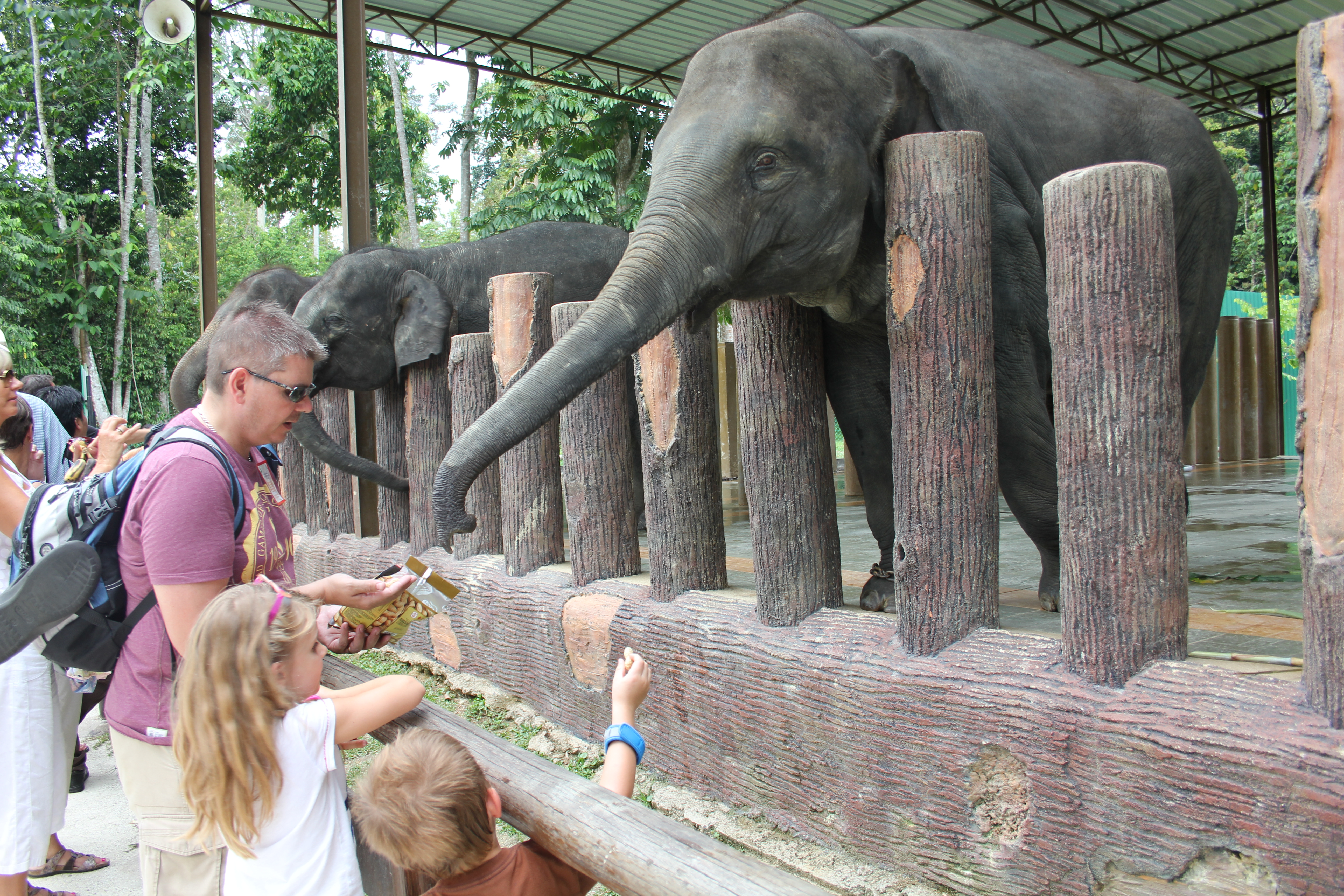 On Thursday we were up early so we could get on the bus to go into the jungle and elephant sanctuary on a “Safari tour”.  It was a 2.5 hour bus ride during which we learned lots about Malaysia: they produce 47% of the worlds palm oil which is used in cosmetics and soap; they export bio-diesel.  There are huge palm tree forests all over the region we travelled through.  The population is 60% Malay, 30% Chinese, 7% Indian which means a country full of differing religions – Hindu, Muslim, Buddhist – all of which peacefully co-exist here.