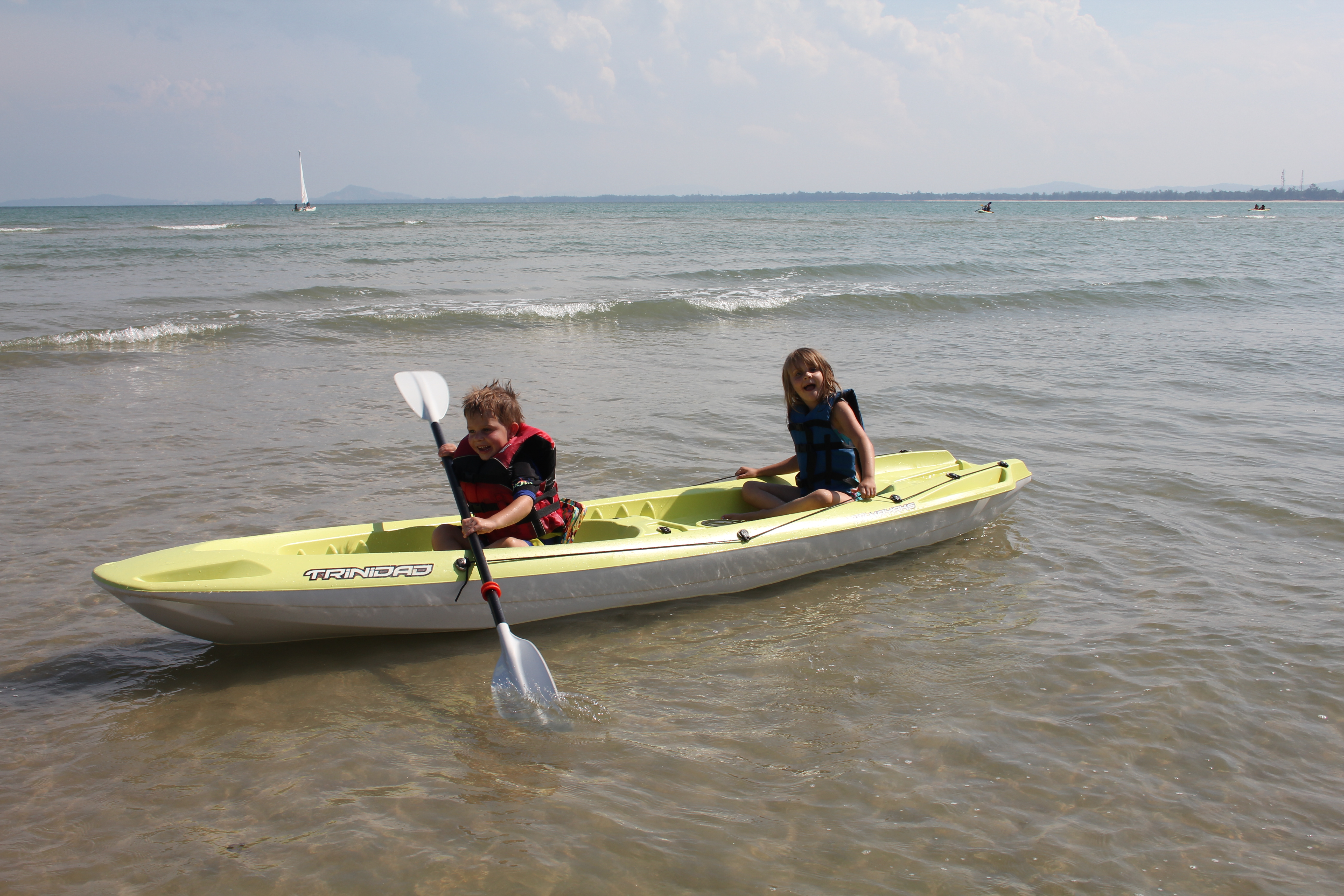 We spent all of Friday morning by the pool.  After lunch we jumped on the resort electric tram to go to Cherating Beach which is unspoiled, natural and very quiet.  It was a lovely afternoon taking kayaks out on the gentle warm ocean, hunting for shells and generally relaxing.  The kids found loads more wonderful shells.