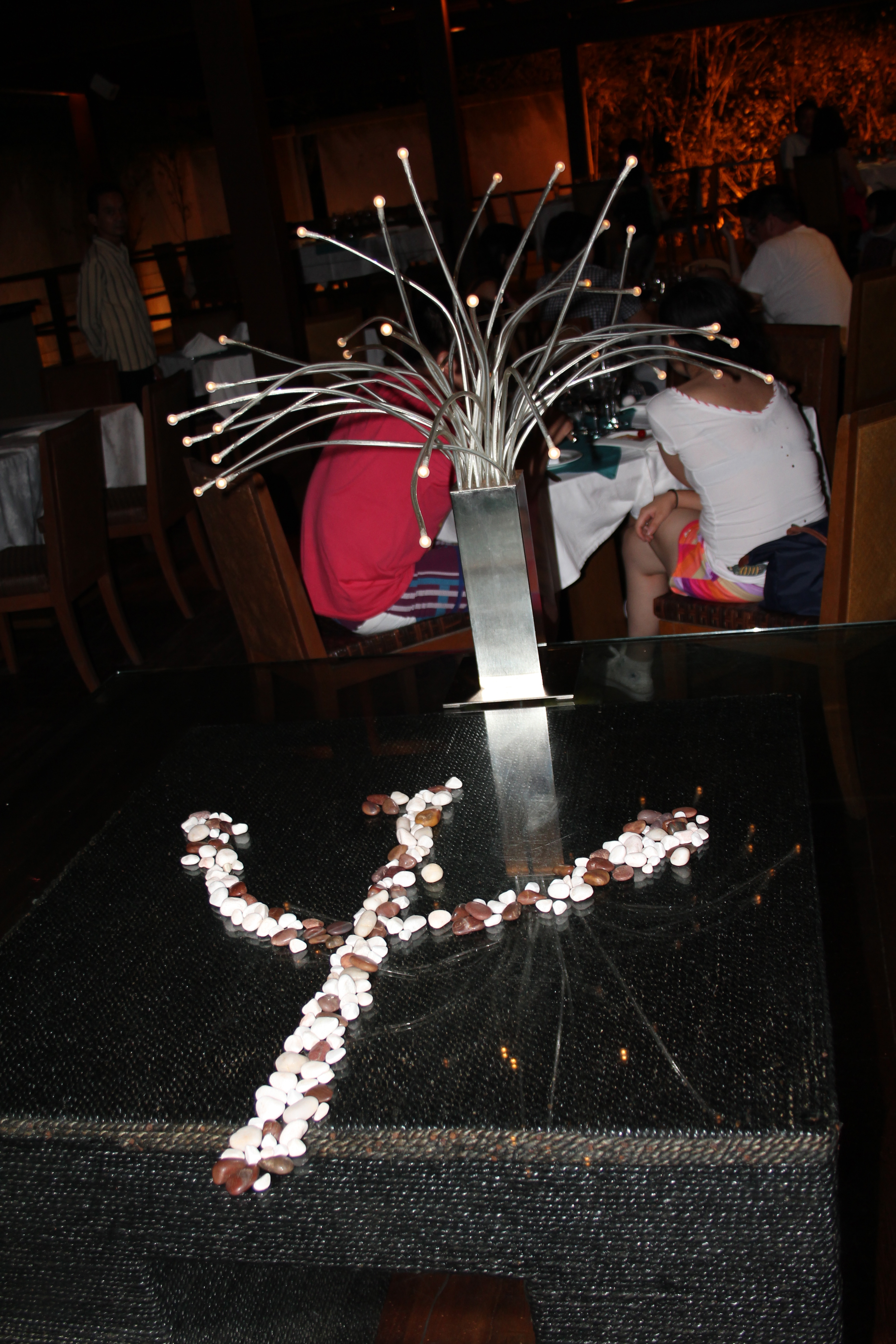 By 4.00pm it was over and blue skies were back again.  The pool was reopened and time to get the kids!!  Oliver’s late nights were catching up with him, so Owen took him back to the room for movie quiet time.  5.00pm came and we were back in the pool for final hour of the day.  After a quick shower for us all, we were ready for Rembulan restaurant on the beach (a reservation only restaurant at club med).  We had a lovely meal which Oliver slept through!!   We had a spectacular light show over the ocean as there were storms in the distance so the lightening over the water was truly spectacular.  Isabelle is proving to be quite the young lady – apple juice in the wine glass,  helping herself to the salad bar and enjoying the finest lamb dish.  Watching the other Asian kids in the restaurant, I was really proud of her behaviour and manners.