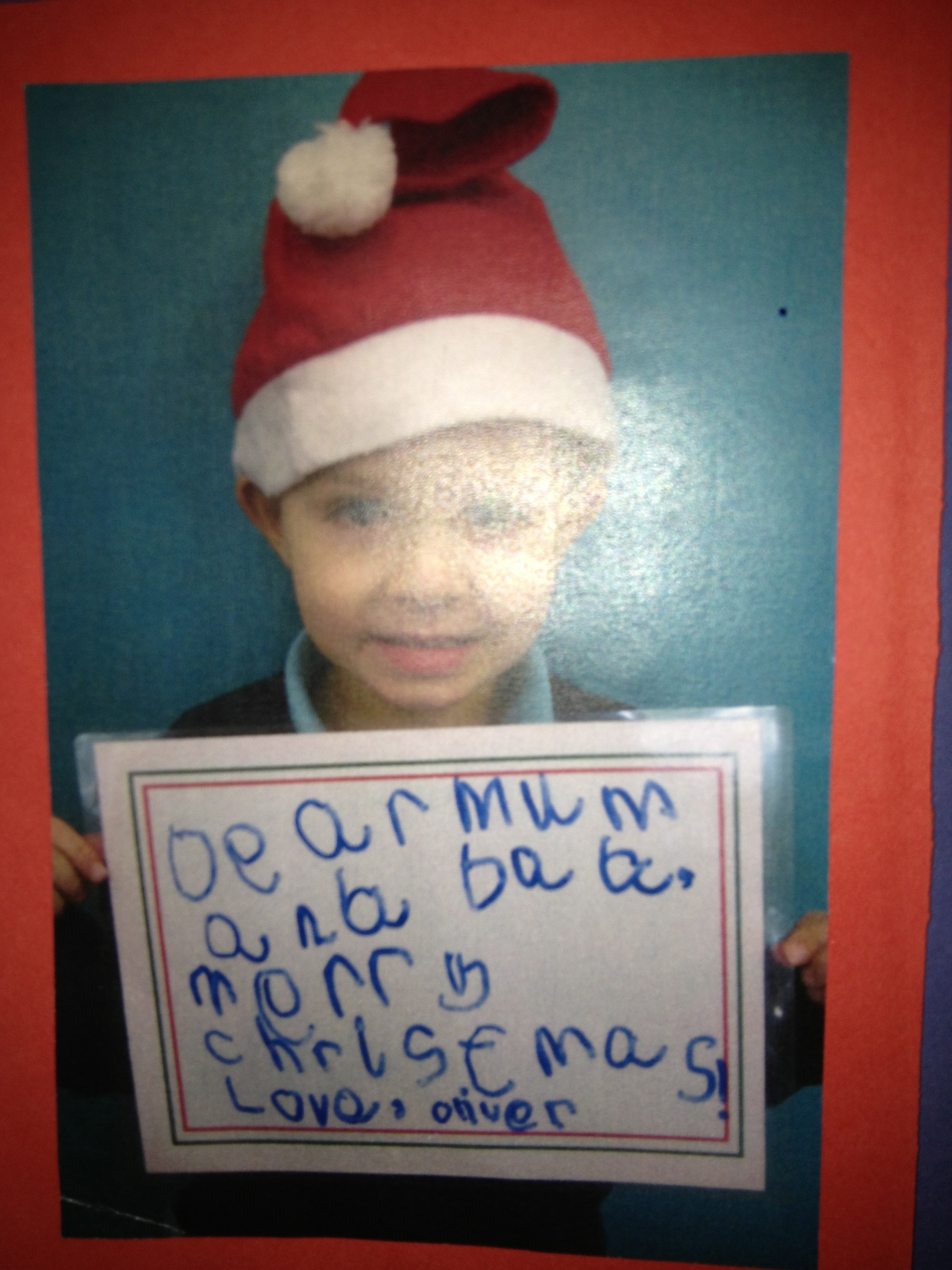 The inside of Oliver’s Christmas Card.
