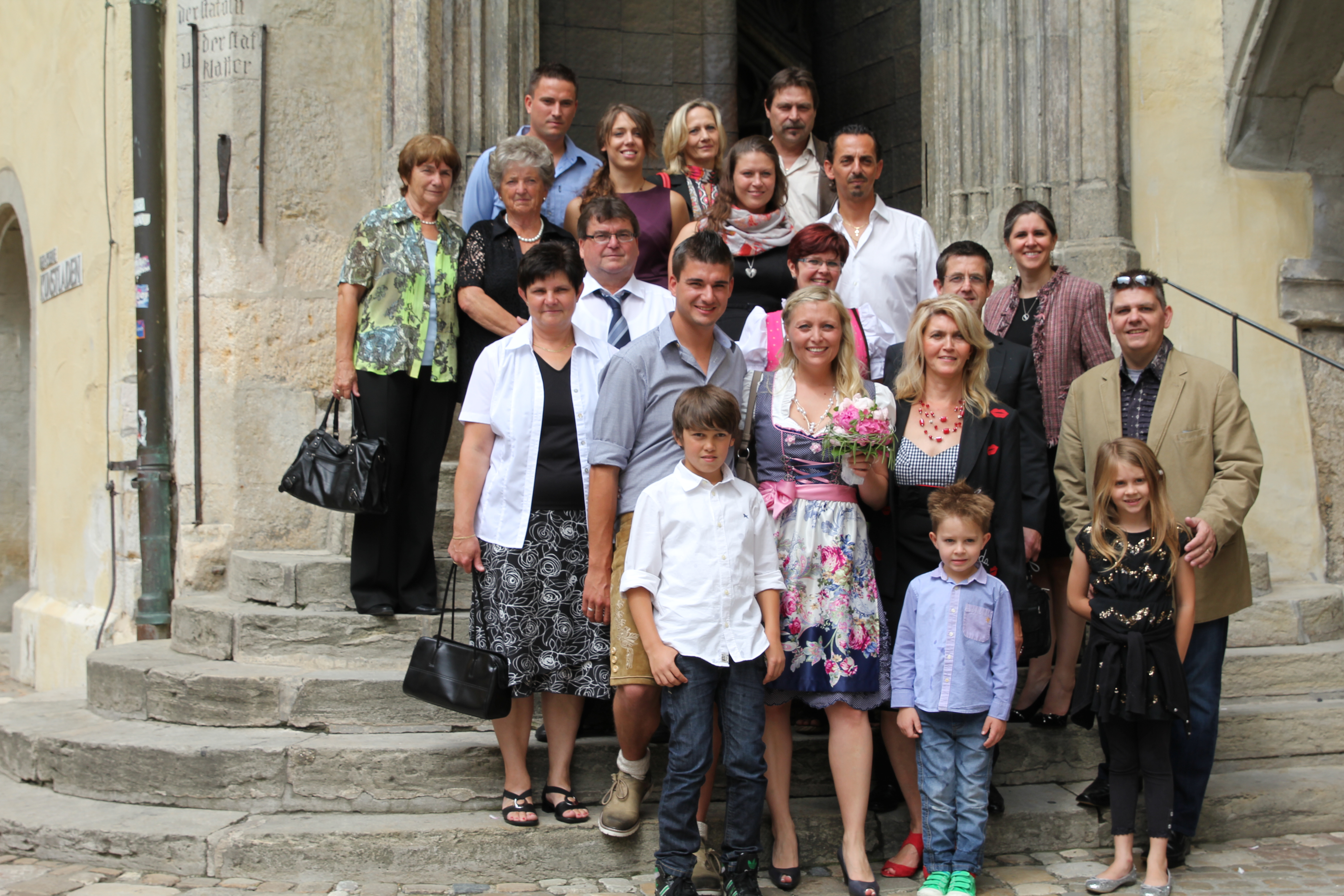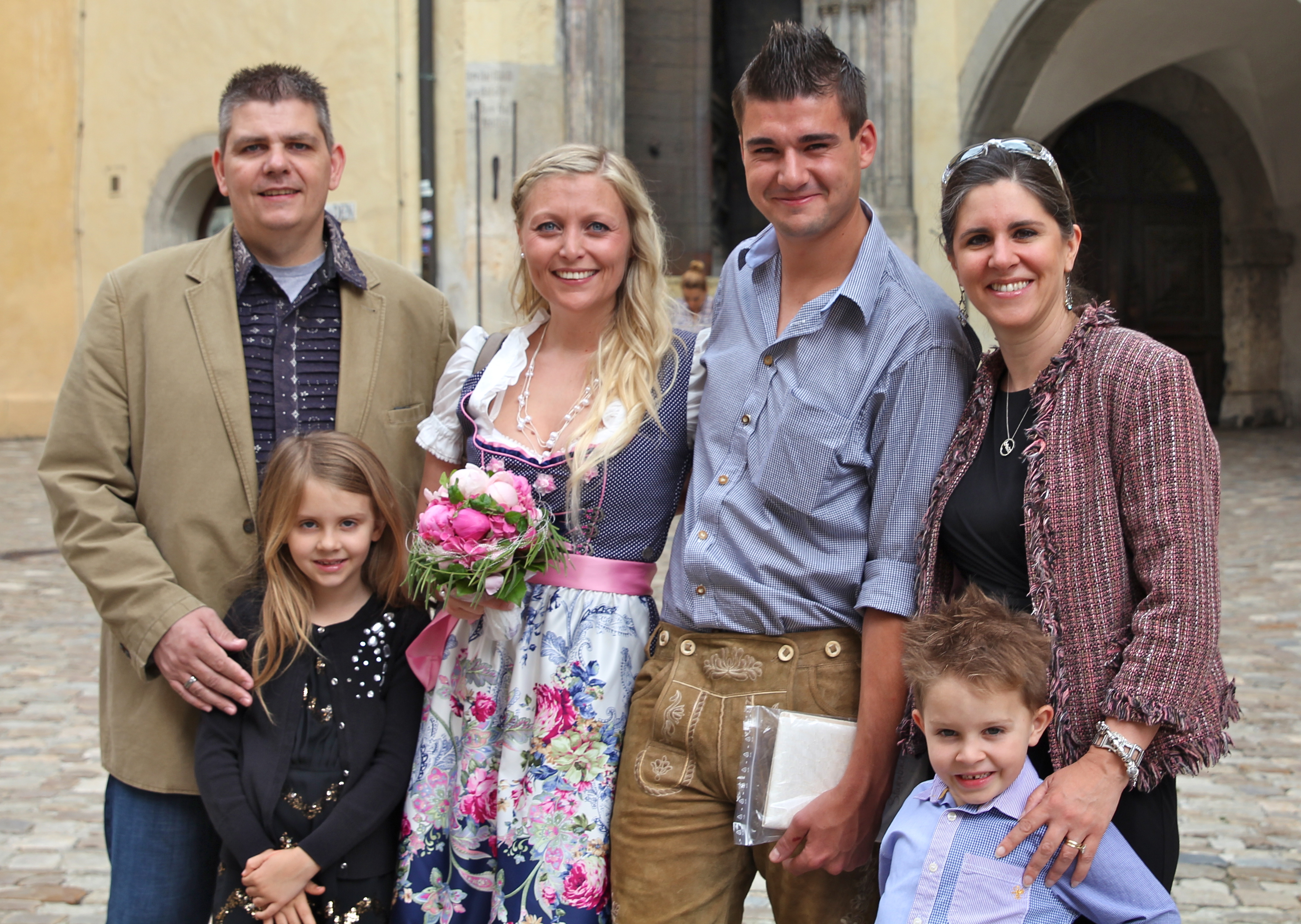We had a couple of days to settle in, re-connect with Steffi’s friends and family, before all the festivities started.  First was the “official” wedding.  This event was in Regensburg at the Rat House (Town Hall) and was just for immediate family.  We were shocked and stunned to find that we were also invited to this celebration.  After a short ceremony, with Steffi and Heiko in traditional Bavarian costume, it was off to a lunch celebration.