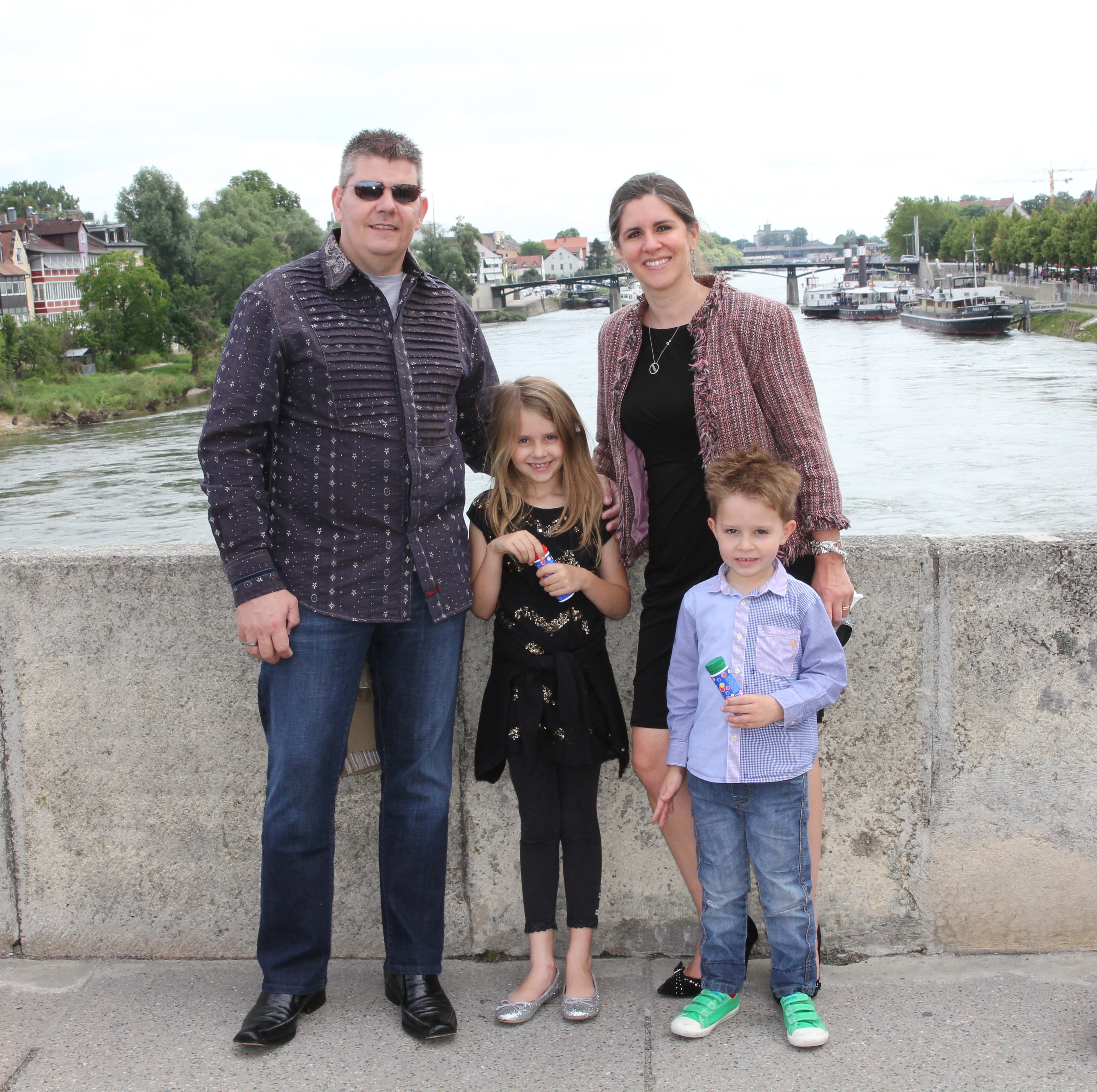 Stopping for photos on a bridge in Regensburg after the Town Hall ceremony.  On our way to lunch!