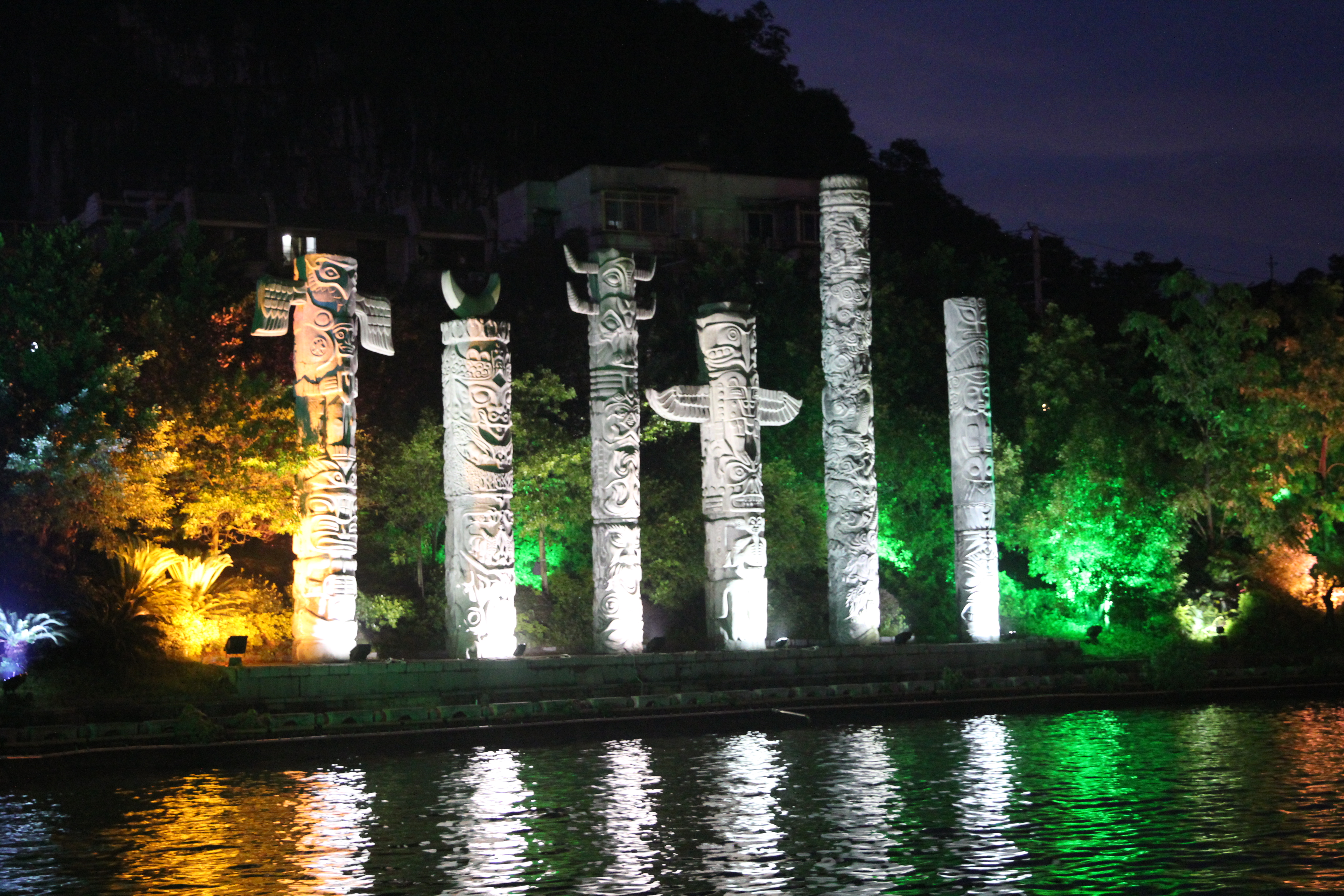 Nine Horse Mural Hill (jiuma hua shan) is a 100-meter-high cliff face, 61km from Guilin and 4km from Xinping. It has been weathered and is a stratified rock surface in various shades of colors. The legend is that the colors represent nine horses that assume a variety of poses: some seem to be running, some just lying there and others playing. It is said that a herdsman (Monkey King) from the heaven brought his horses to Li River and while there, an artist saw those horses and wanted to draw them. Unfortunately, the horses were so scared of him that they ran into the cliff and never came out again.