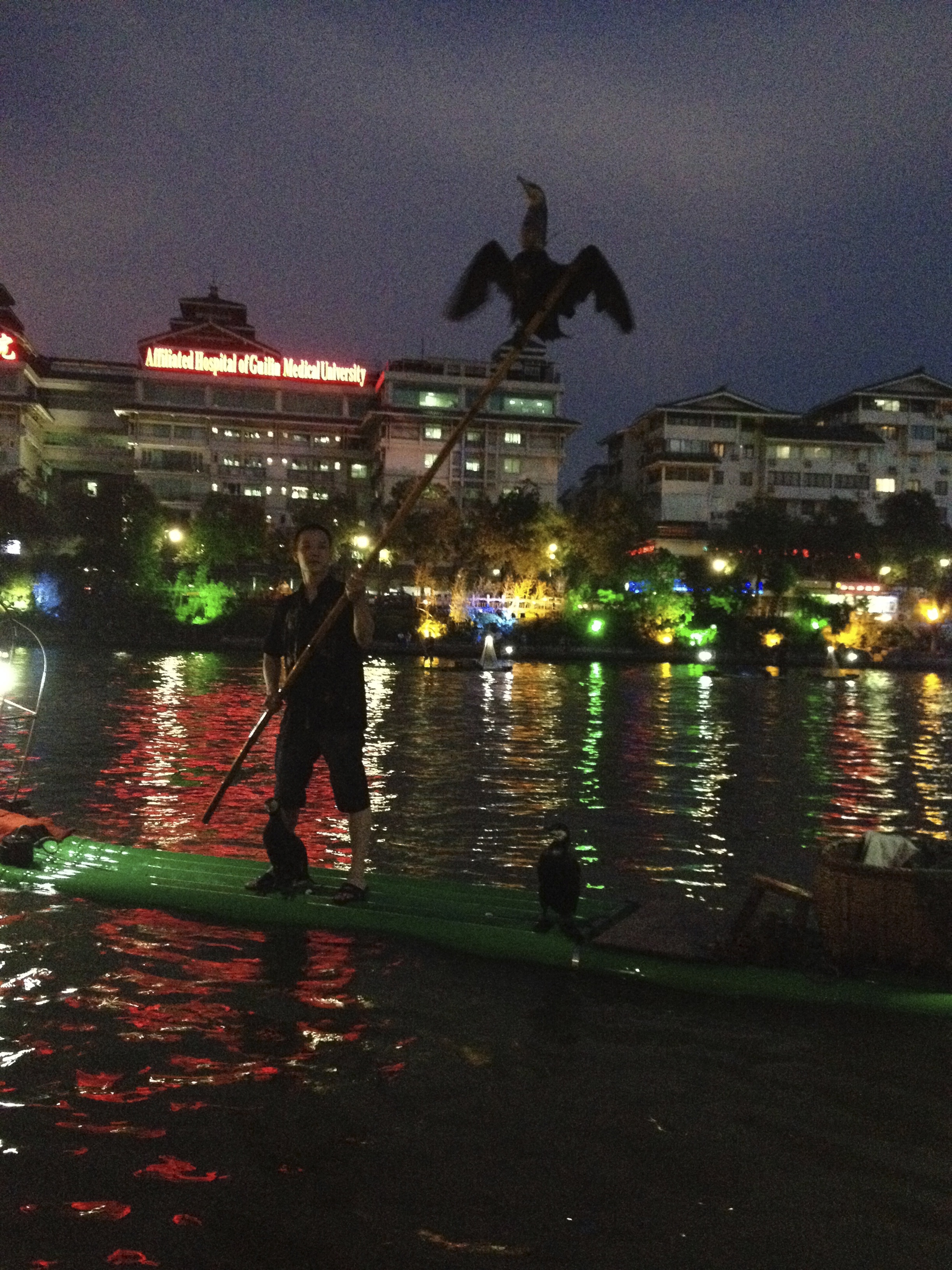 Cormorants are good sized birds who enjoy diving underwater in search of fish. The local fishermen use the cormorants to catch the fish and return them to the boat. They drive the birds into the water where they dive below the surface in search of fish. When the birds catch a fish they return to the boat and the fisherman removes the fish from their throat and places it in the basket. The secret is that the fisherman places a cord around the bird’s neck to keep the bird from swallowing the fish. I am not sure if I like this approach, but it was certainly a good show.