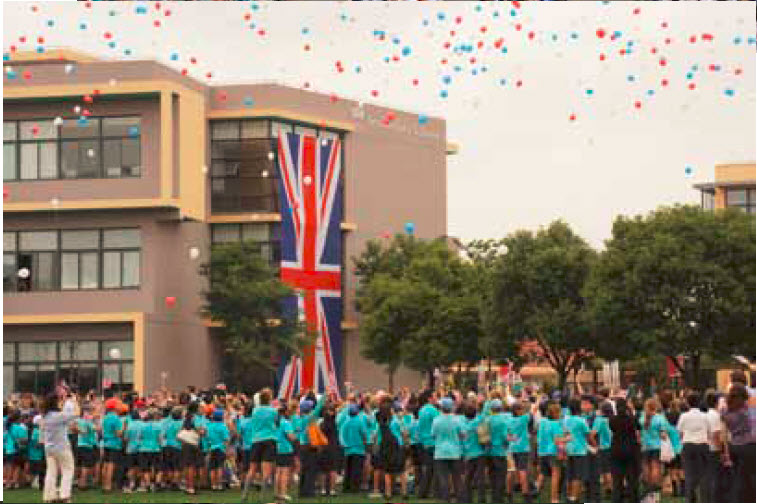 BISS has been celebrating the Queen’s Diamond Jubilee along with the rest of the UK (and many areas of the Commonwealth). Friday was the Pudong Big Lunch (part of the global Eden Project) and the kids enjoyed a picnic at school. After lunch, all the school children let off red, white and blue balloons into the sky. they had 1 each to release. I wish I could have seen over a 1000 balloons in British colours floating away. Here are a couple of photos from the school newsletter: