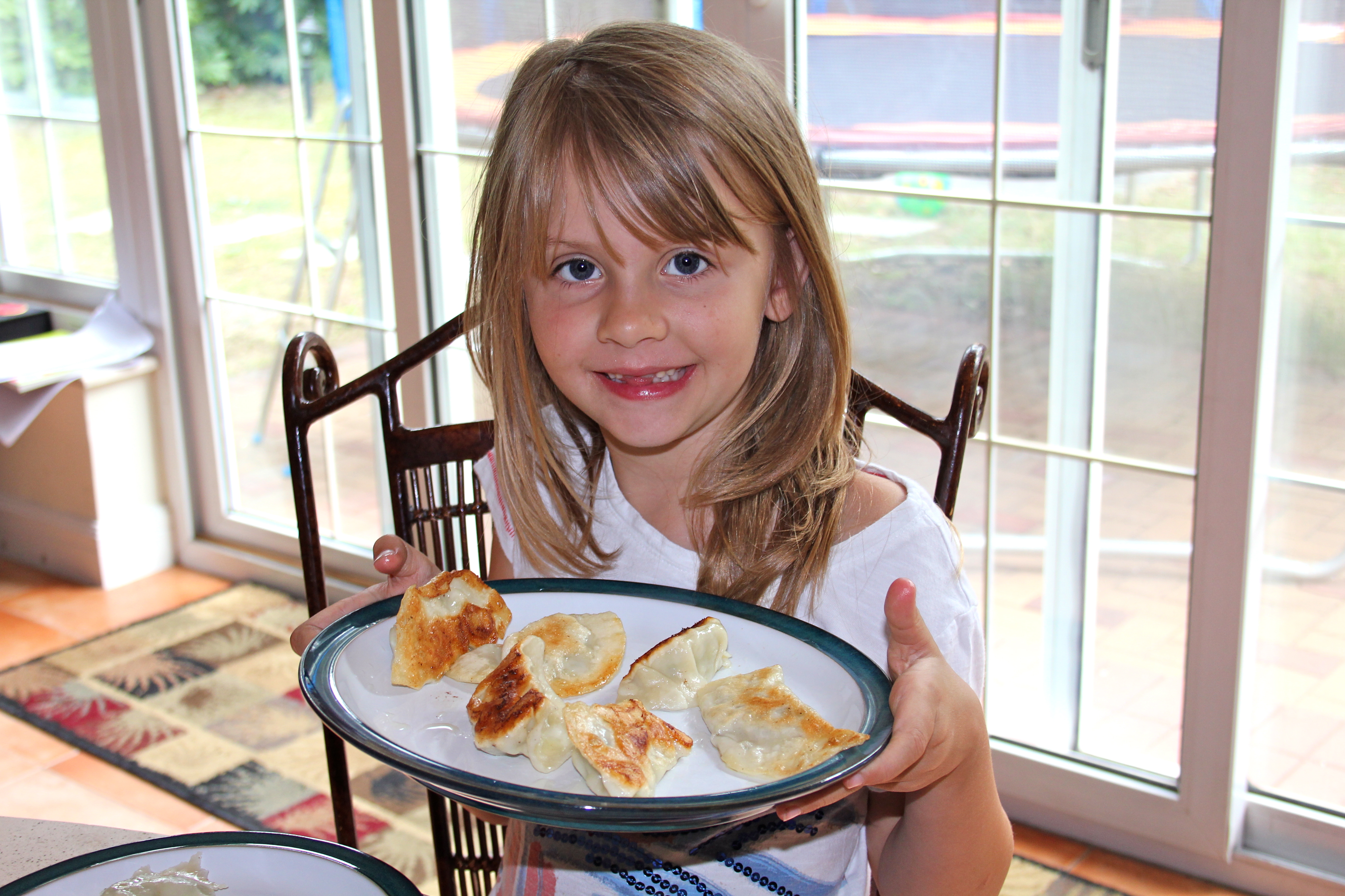 Last weekend our Ayi, Angela, was babysitting. (Owen was in the UK collecting his medication and I was going to a 40th birthday party.) I came downstairs from getting ready to find Angela and Isabelle hard at work making more delicious dumplings. Angela was showing Isabelle different ways of filling and making them. Oliver and I were lucky enough to taste them for lunch on Sunday! There are a couple of different ways to cook them – you can either steam them or fry them. I like them fried best and so that is how we ate them. Surprisingly, even when frying you use at least 1 cup of water to steam them at the same time. When I read the instructions, I thought that something must have been translated wrong, but as you can see from the photo, they looked (and tasted) perfect!