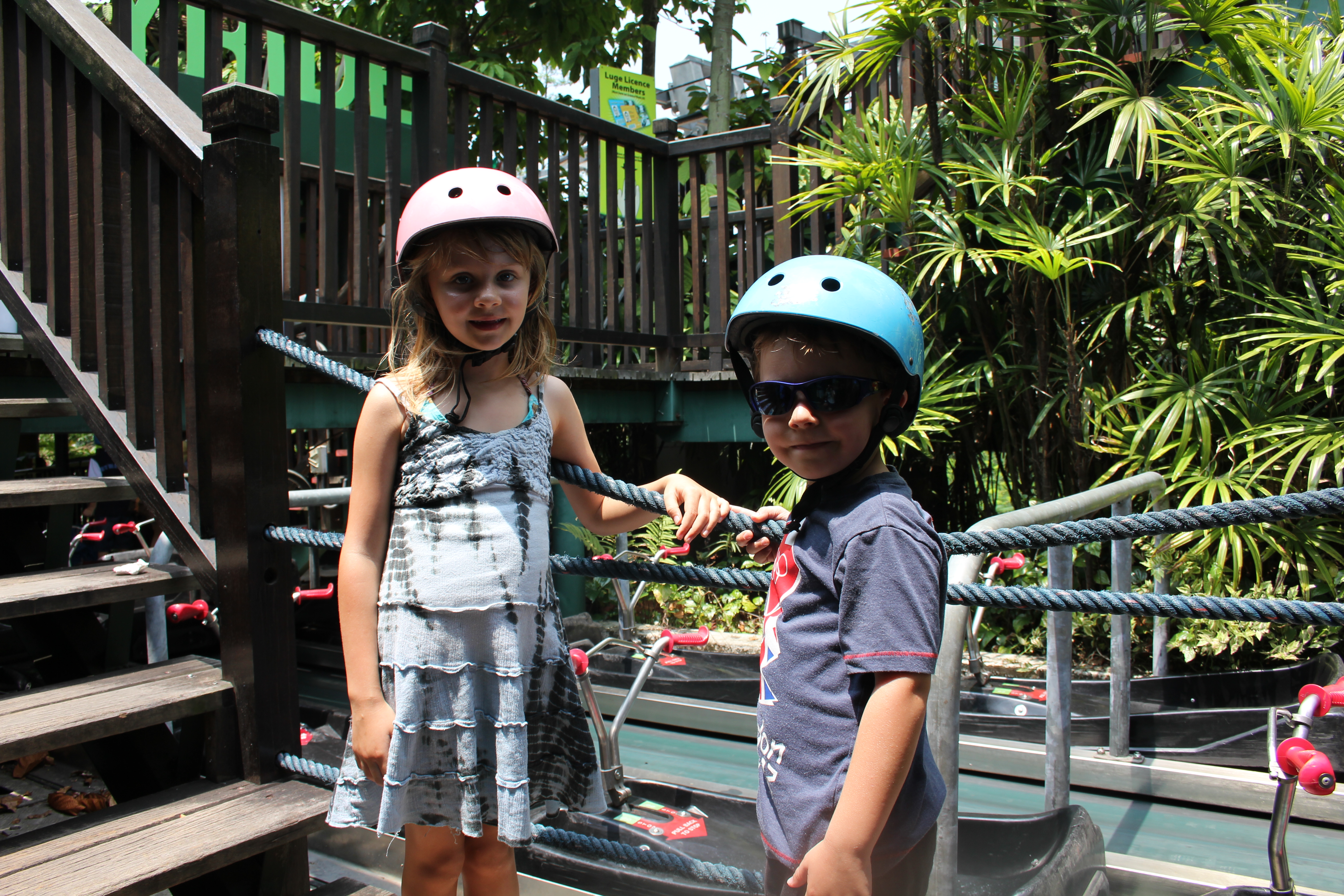 Waiting to do the Mega Zip line ride – it is very high and the kids were a little nervous!