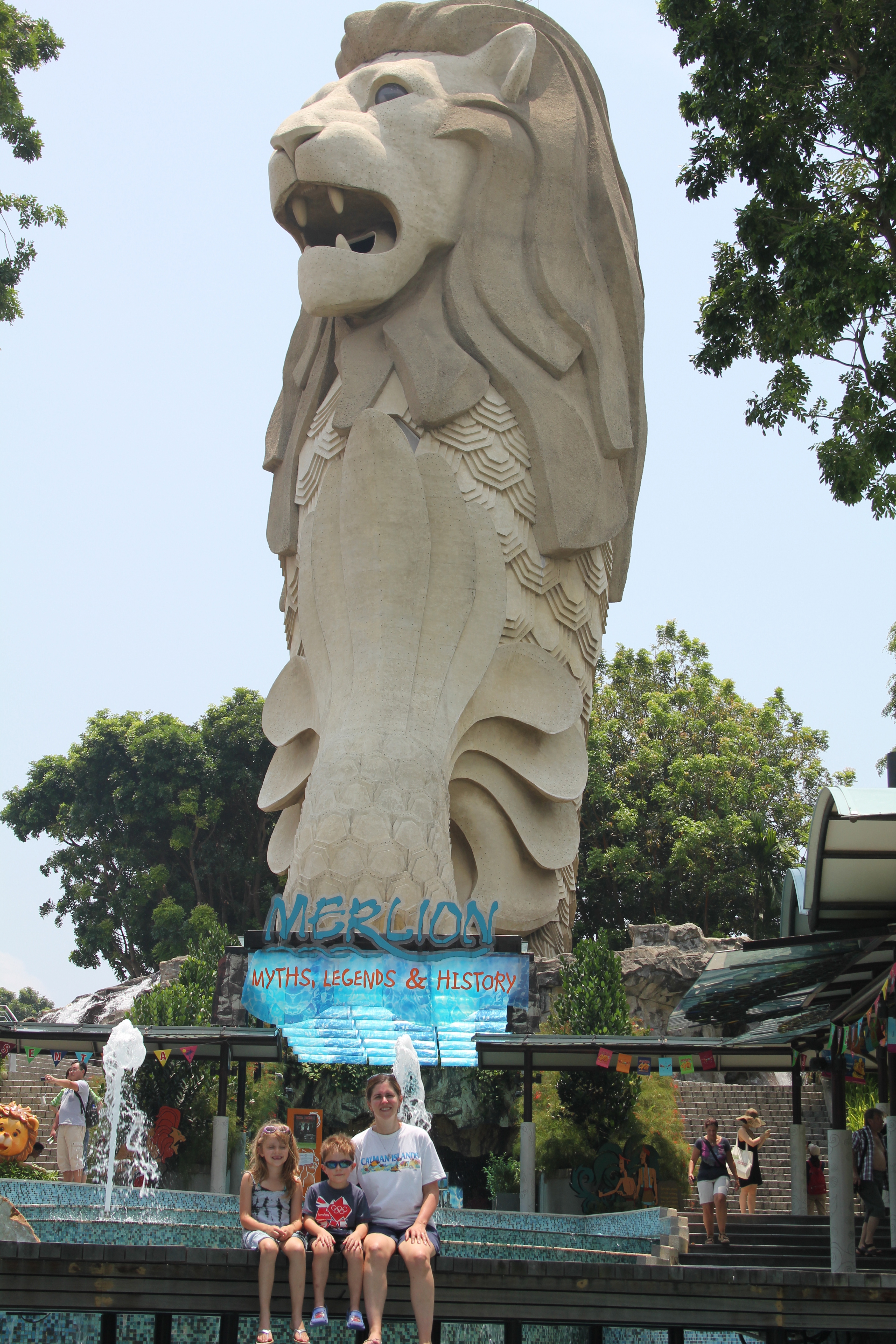 After the Luge, we rode the tram up to the next stop where the Singapore Merlion is. We all climbed the Merlion and took photos from the top – you could see all of Sentosa from there, including Universal Studios! We all stood in the Merlions mouth for more photos and discovered that it actually has 16 teeth and not 4 that you can see from below! We took a leisurely walk back to Beach Station and then caught the tram back to the hotel. After another lovely dinner, the kids begged to go back to Cool Zone so Owen and I had another lovely evening enjoying a couple of cocktails before we collected them at bedtime!