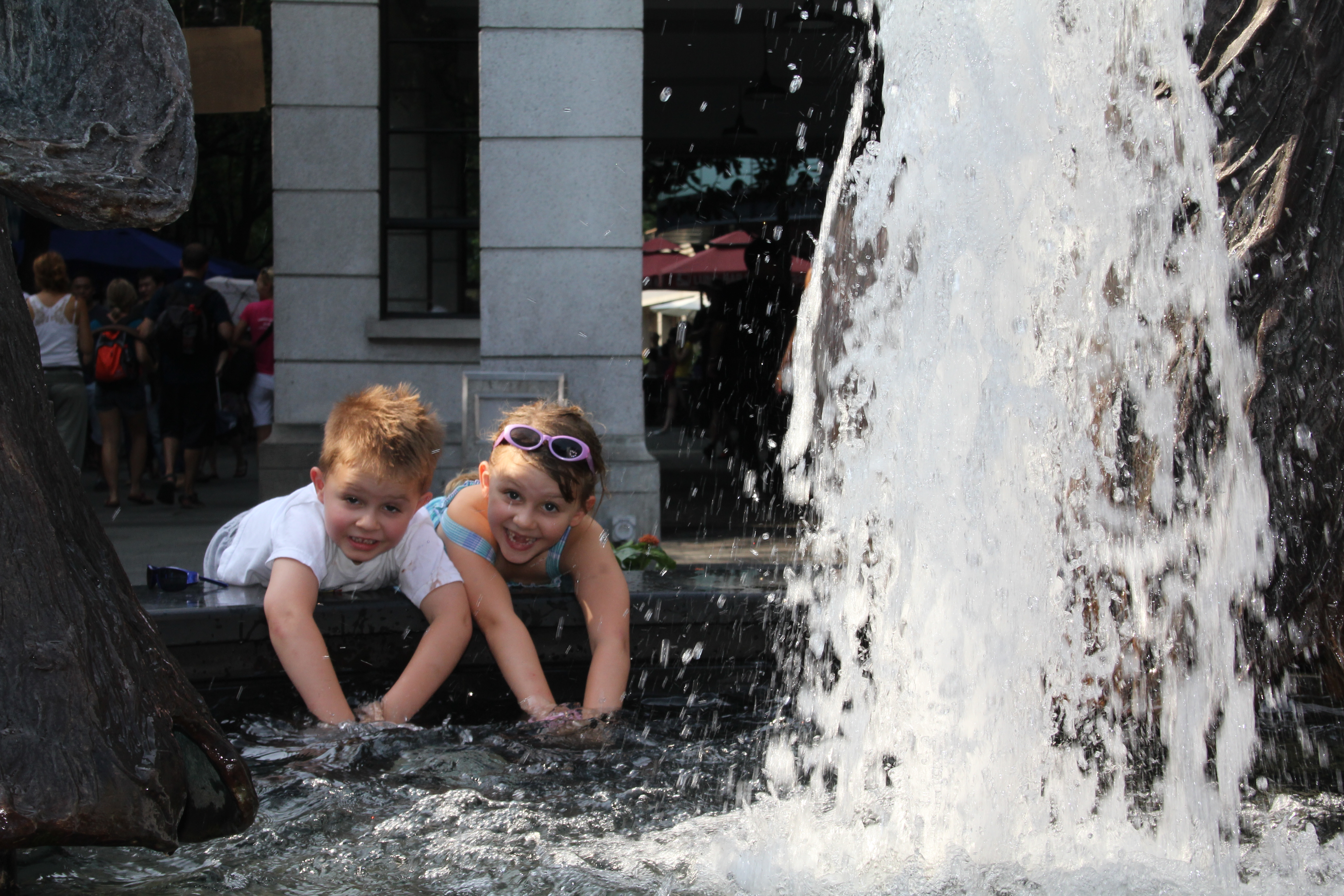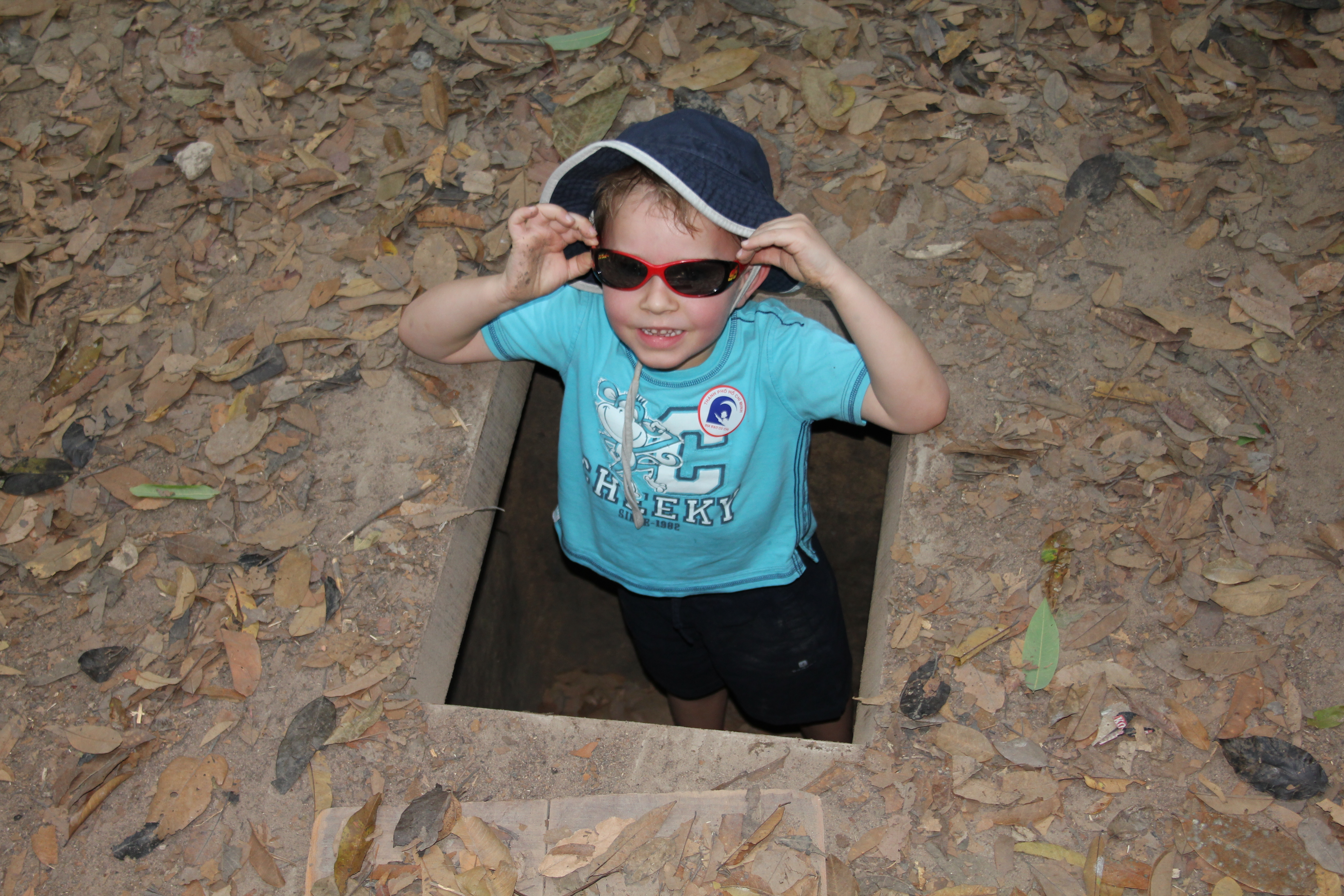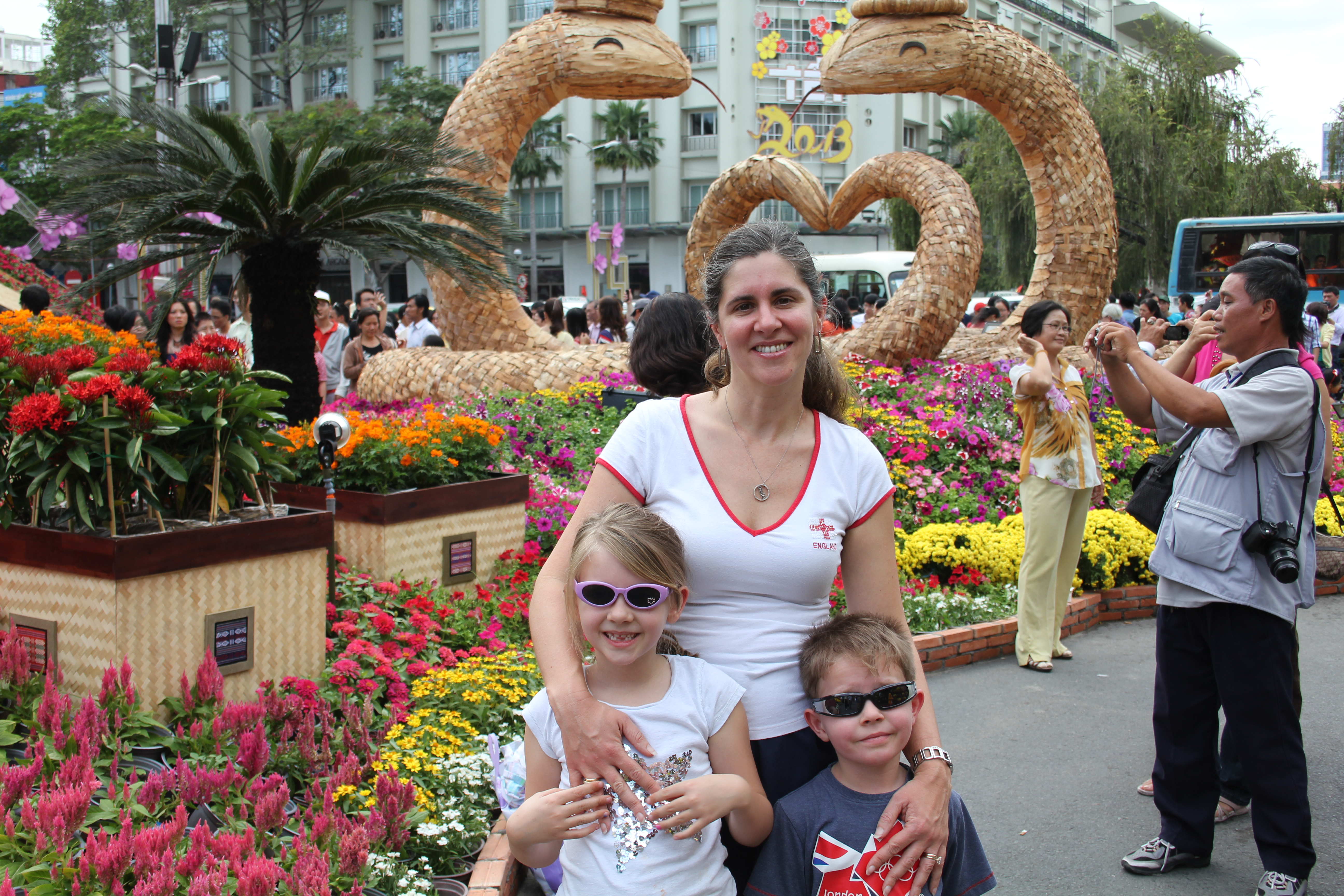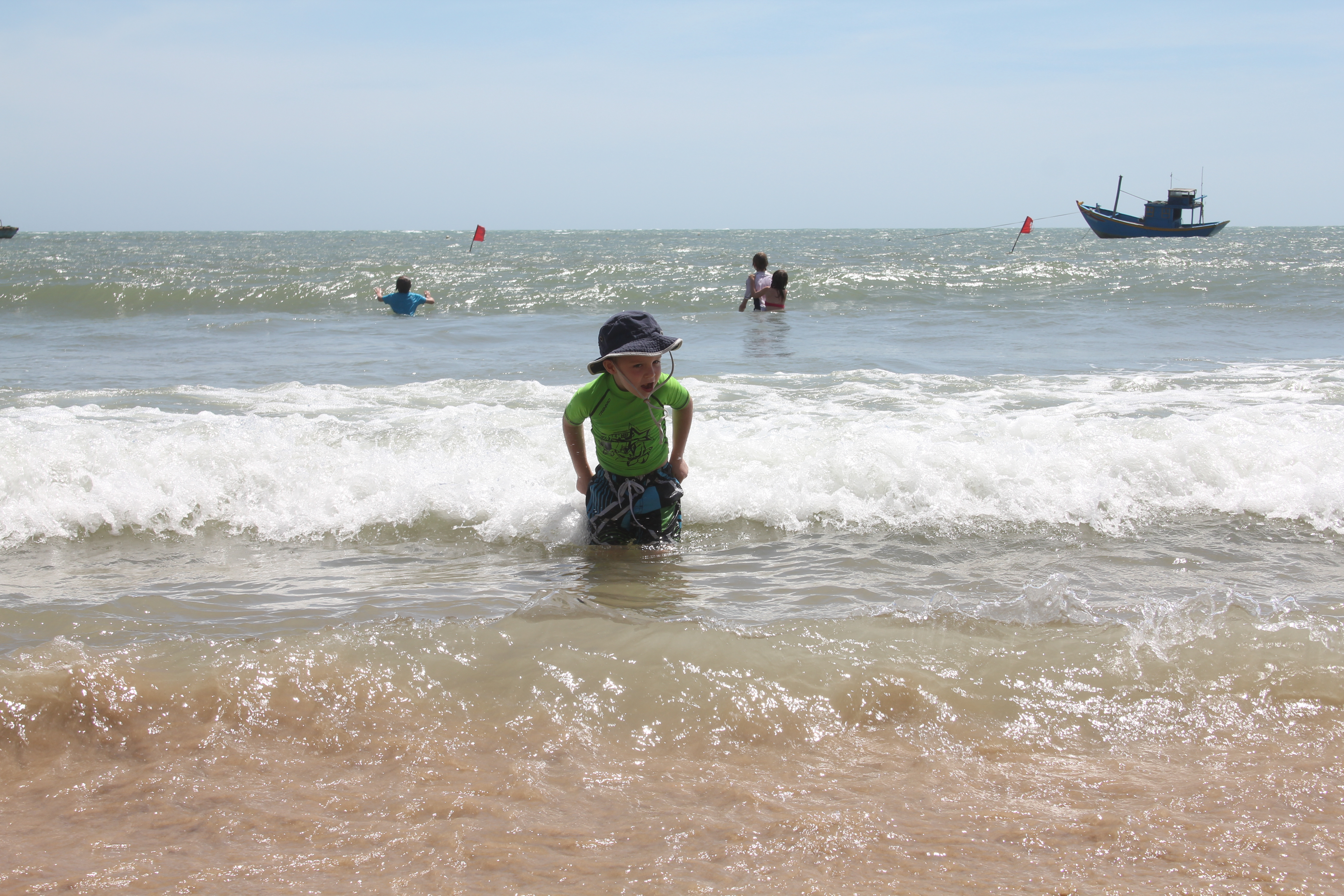 After this, we walked back to meet our driver who took us to another part of the River for Bamboo river ride. This was a huge highlight for the whole family! They are floating bamboo rafts that hold 2 people. Owen and Isabelle were in 1 and Oliver and I in another. We bought some water pistols and had LOADS of fun drenching everybody. We also got soaked as a result of the payback. Both of our guides stopped to get us beers – which were being kept cool in the river!!